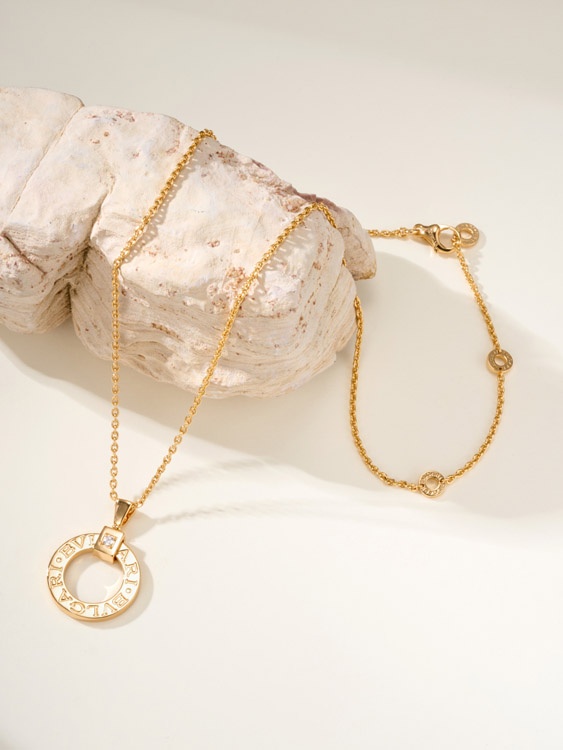 Bulgari logo engraved necklace logo letters on round pendant-3585