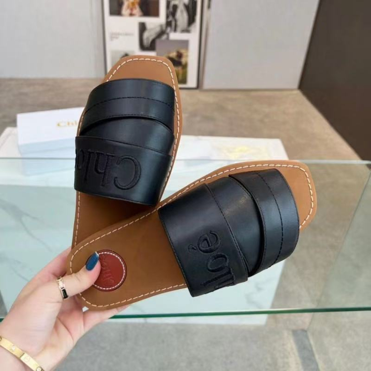 Chloe new embroidered logo flat slide sandals-5629