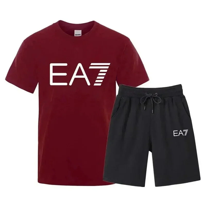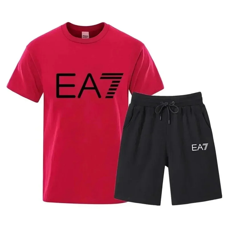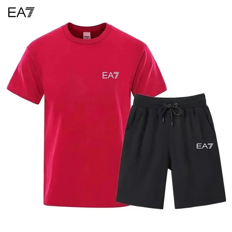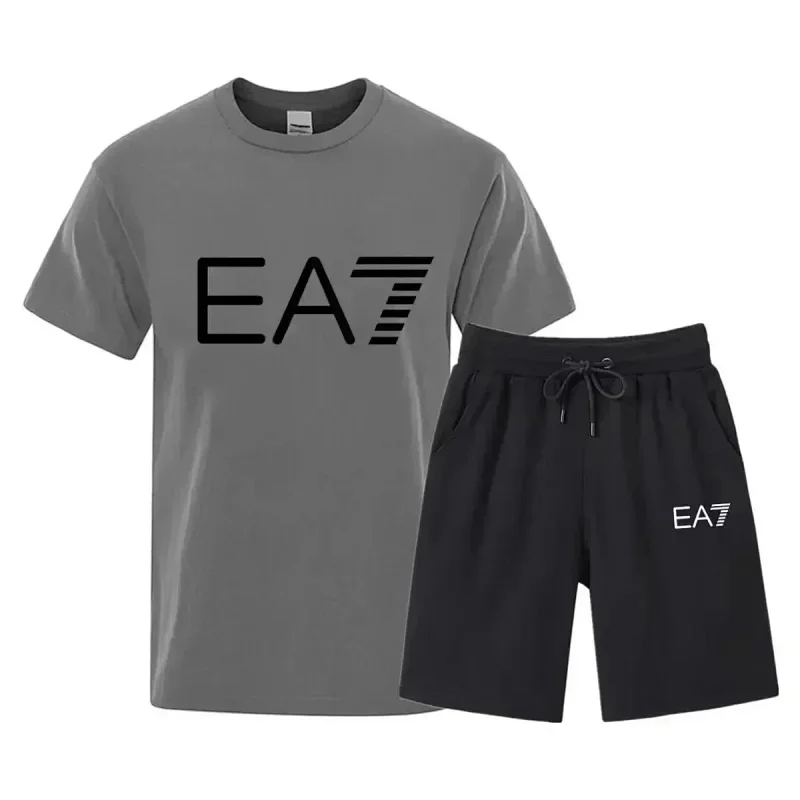 EMPORIO ARMANI EA7 Lettering Logo Round Neck Short Sleeve T-Shirt Shorts Set-2751