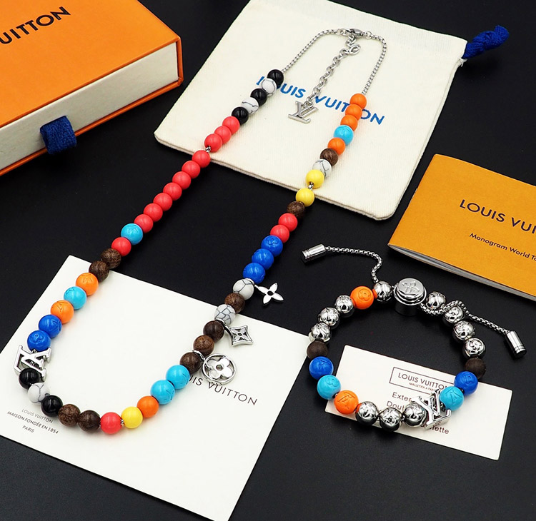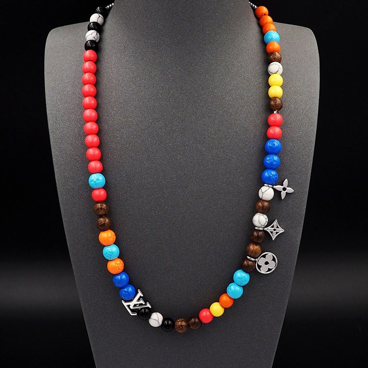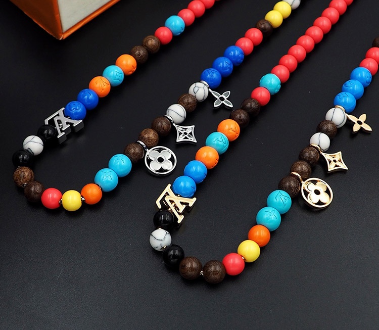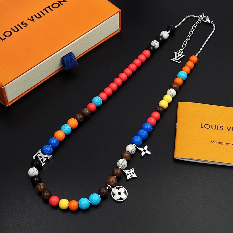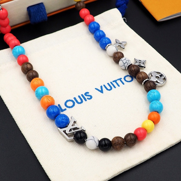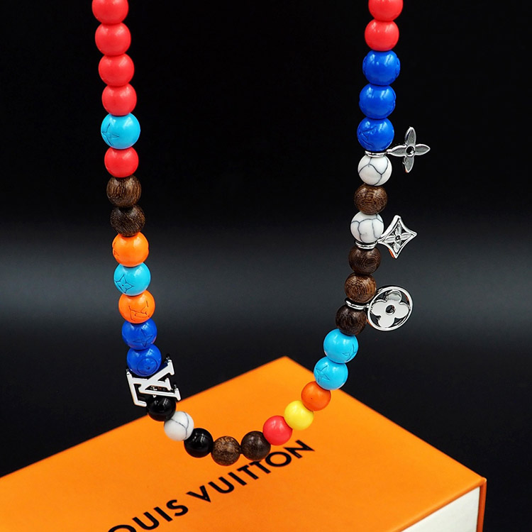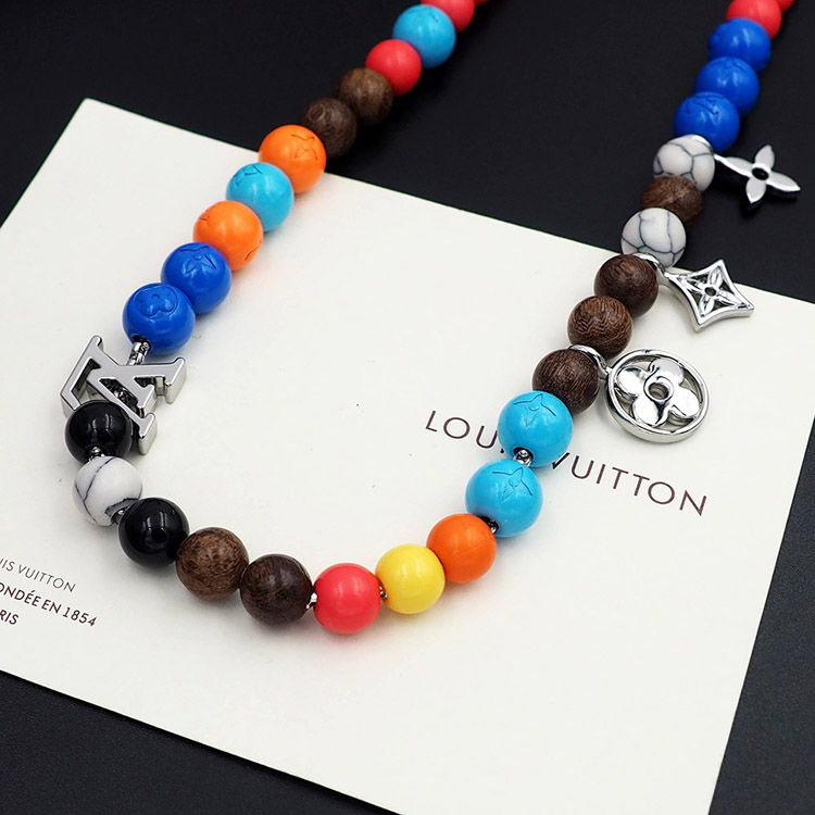 Home > Louis Vuitton LV adjustable cord embellished wooden inscription metal beaded necklace-3950