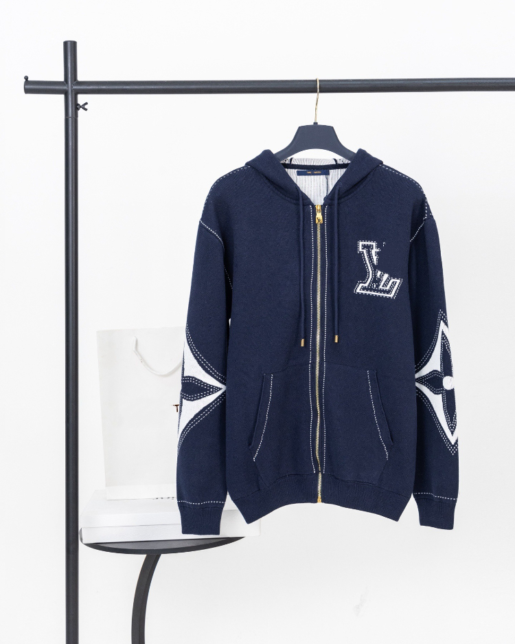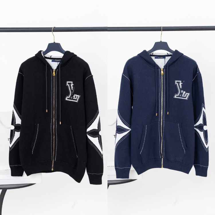 Home > Louis Vuitton LV new knitted intarsia clover pattern casual loose zip-up cardigan jacket-5307