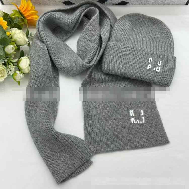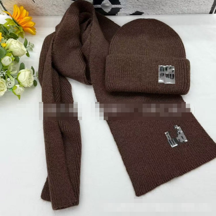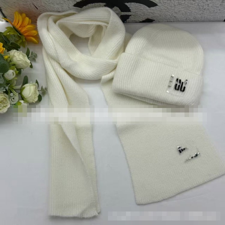 Miu Miu new rabbit fur warm knitted hat and scarf set-5977
