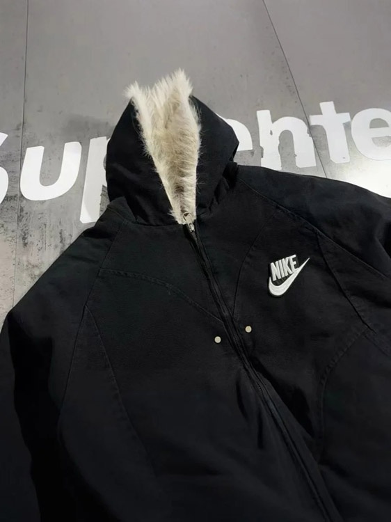 Nike new embroidered swoosh hooded fleece-lined cotton jacket-5079