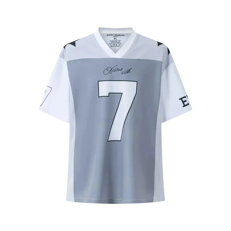 Spliced letter print short-sleeved T-shirt digital mesh sports jersey-1908