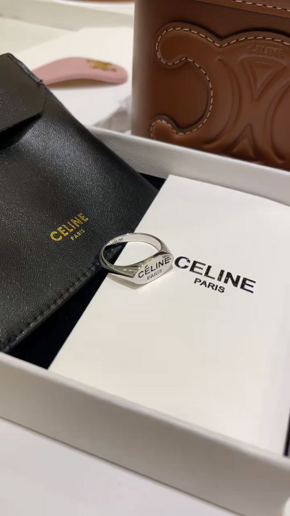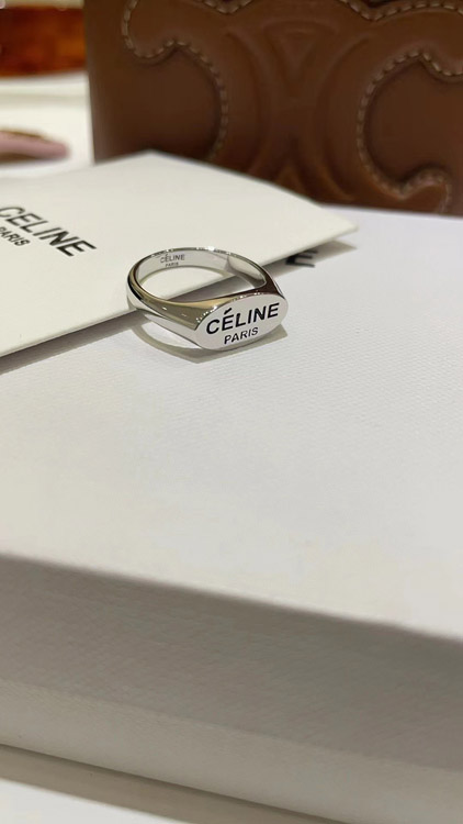 Celine black letter print silver ring-3737