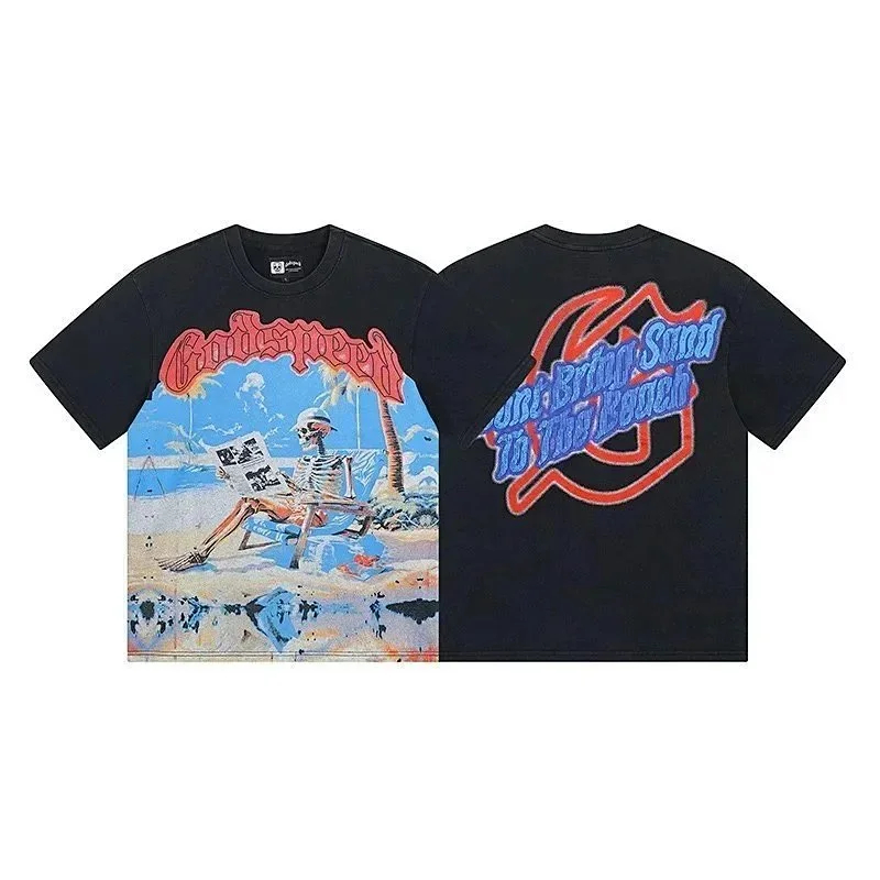 Godspeed letter print loose couple pure cotton round neck short sleeve T-shirt-1979