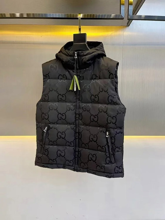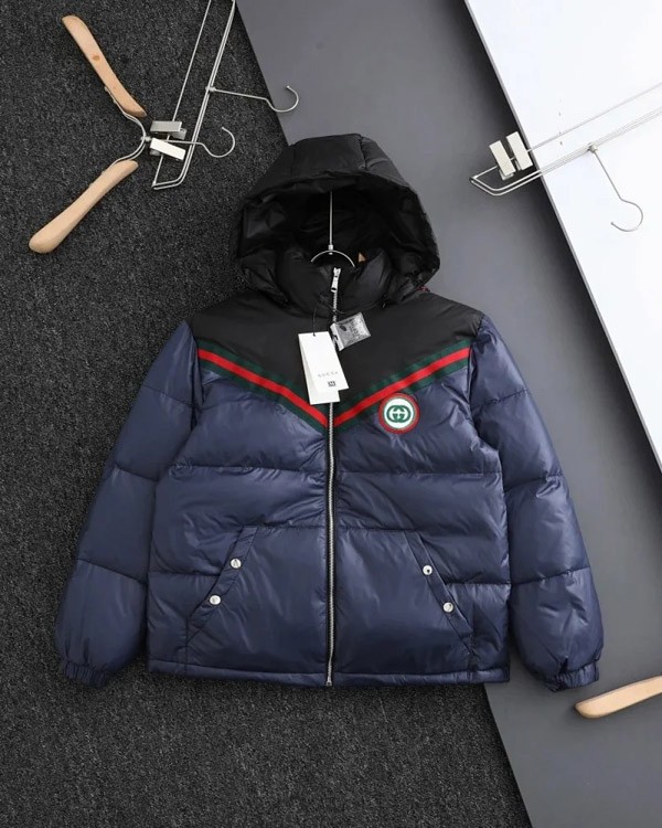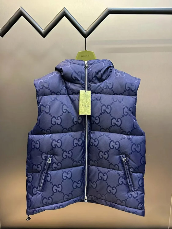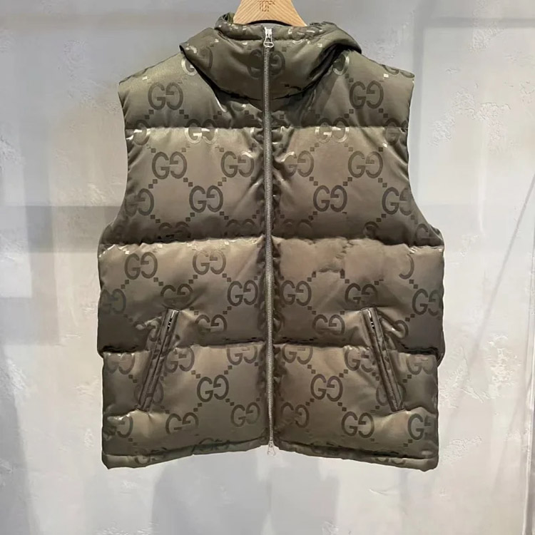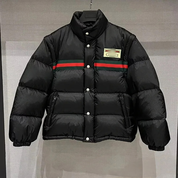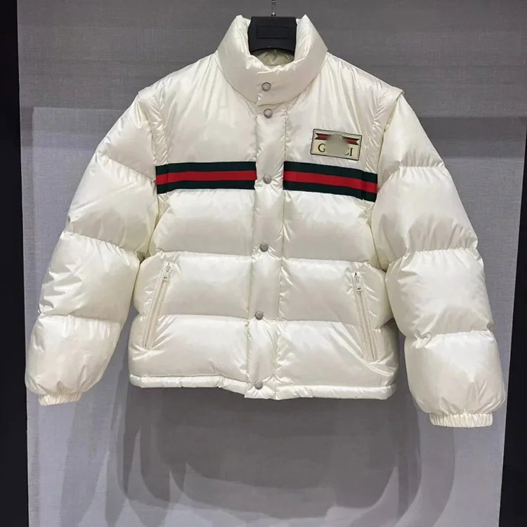 Home > GUCCI Logo label striped webbing quilted detachable sleeves aviator down jacket-4265