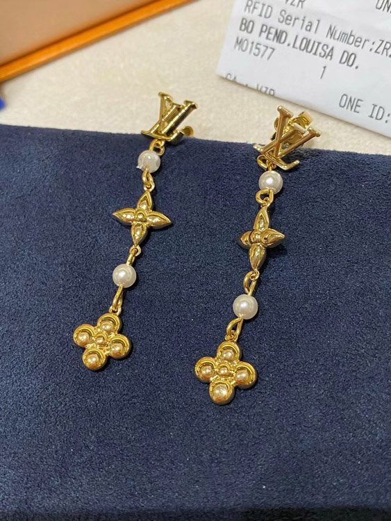 Home > Louis Vuitton LV letter pearl four-leaf clover long earrings-3832