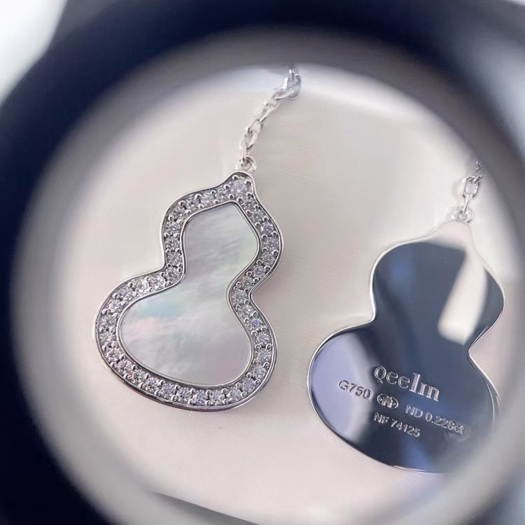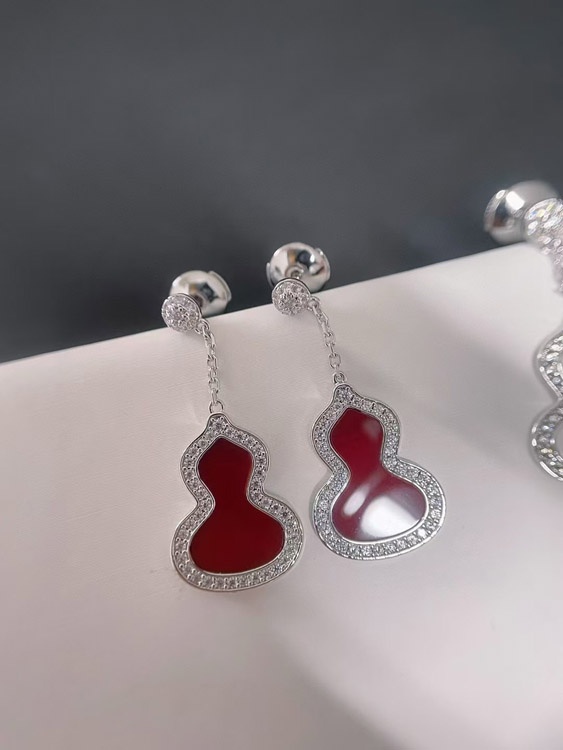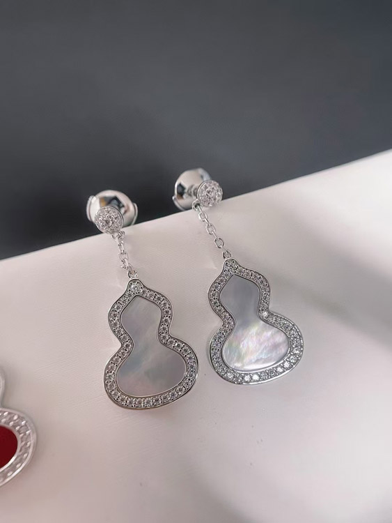 Qeelin White mother-of-pearl carnelian gourd earrings-3674